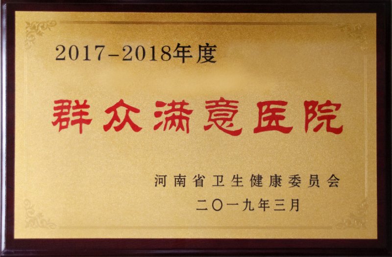 新乡市中心医院荣获2017-2018年度河南省群众满意医院称号